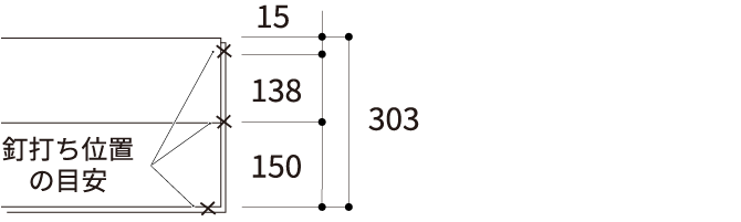 床暖房放熱体の「釘打ち可能部分」に従って、割り付けてください。